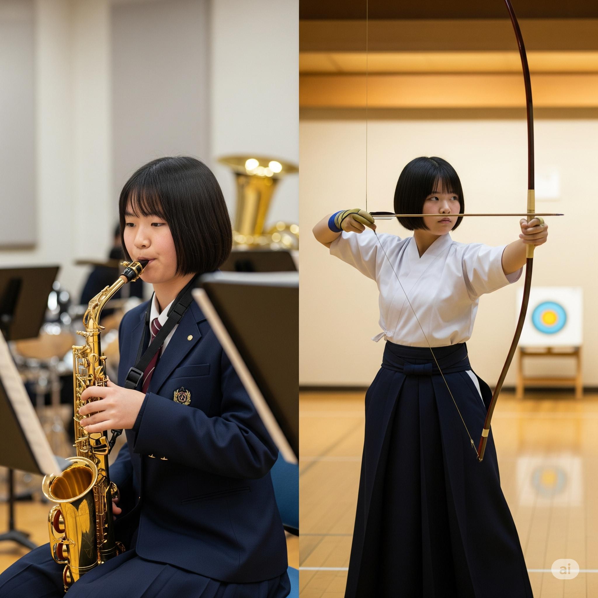 なんか、部活の弓道も、吹奏楽もやってて楽しいな